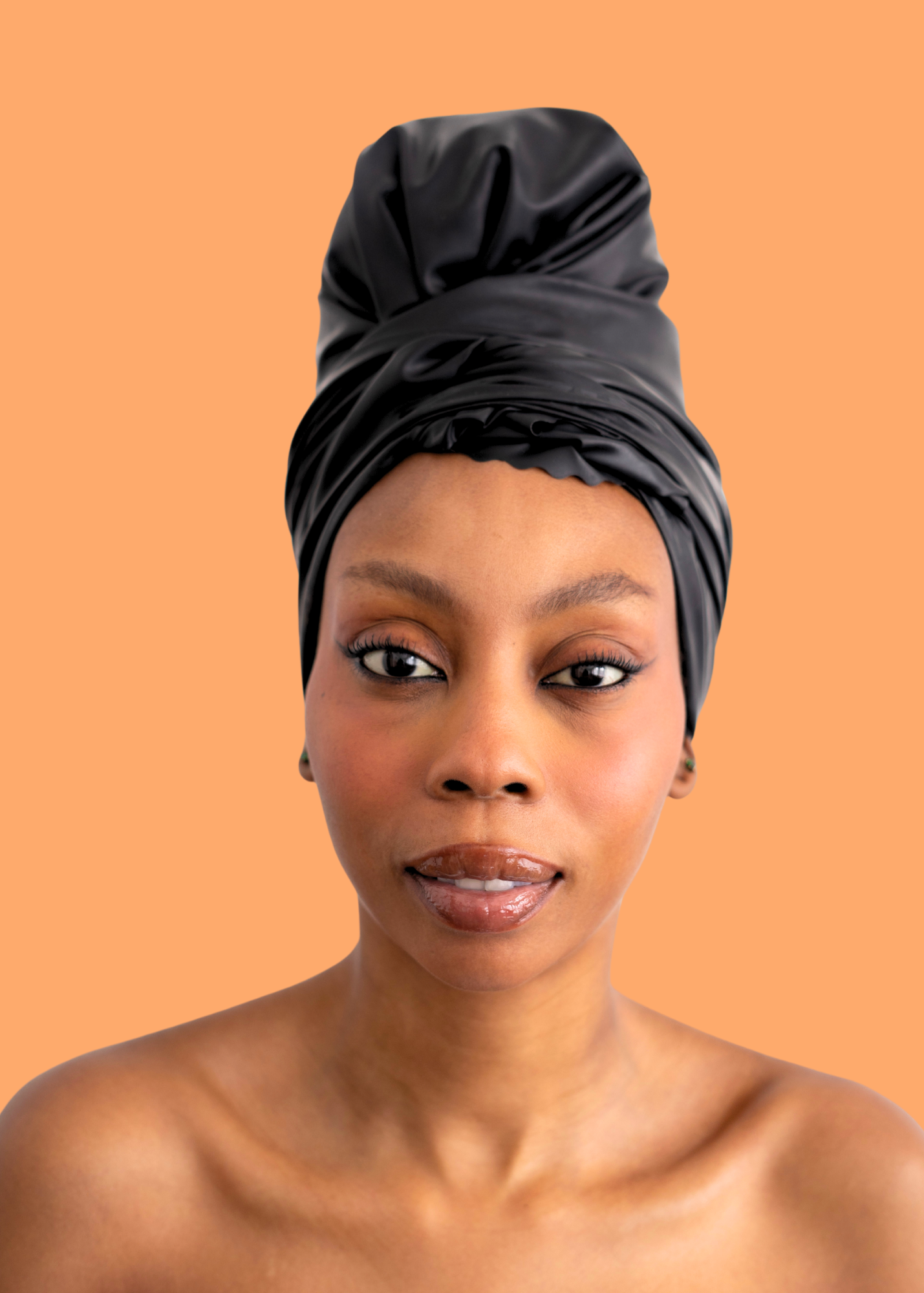 Our Luxe Obé Satin Bonnet is the perfect accompaniment gifted in every box. The height of stylish elegance, offering unparalleled comfort. Suitable for elevating your everyday wardrobe, wearing underneath your NEMES for its wicking benefits and to release your hands for tying your head scarf, or it can be used over your NEMES during conditioning and steam treatments.