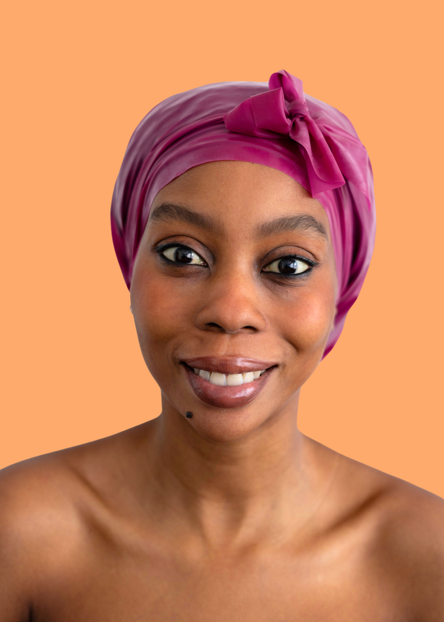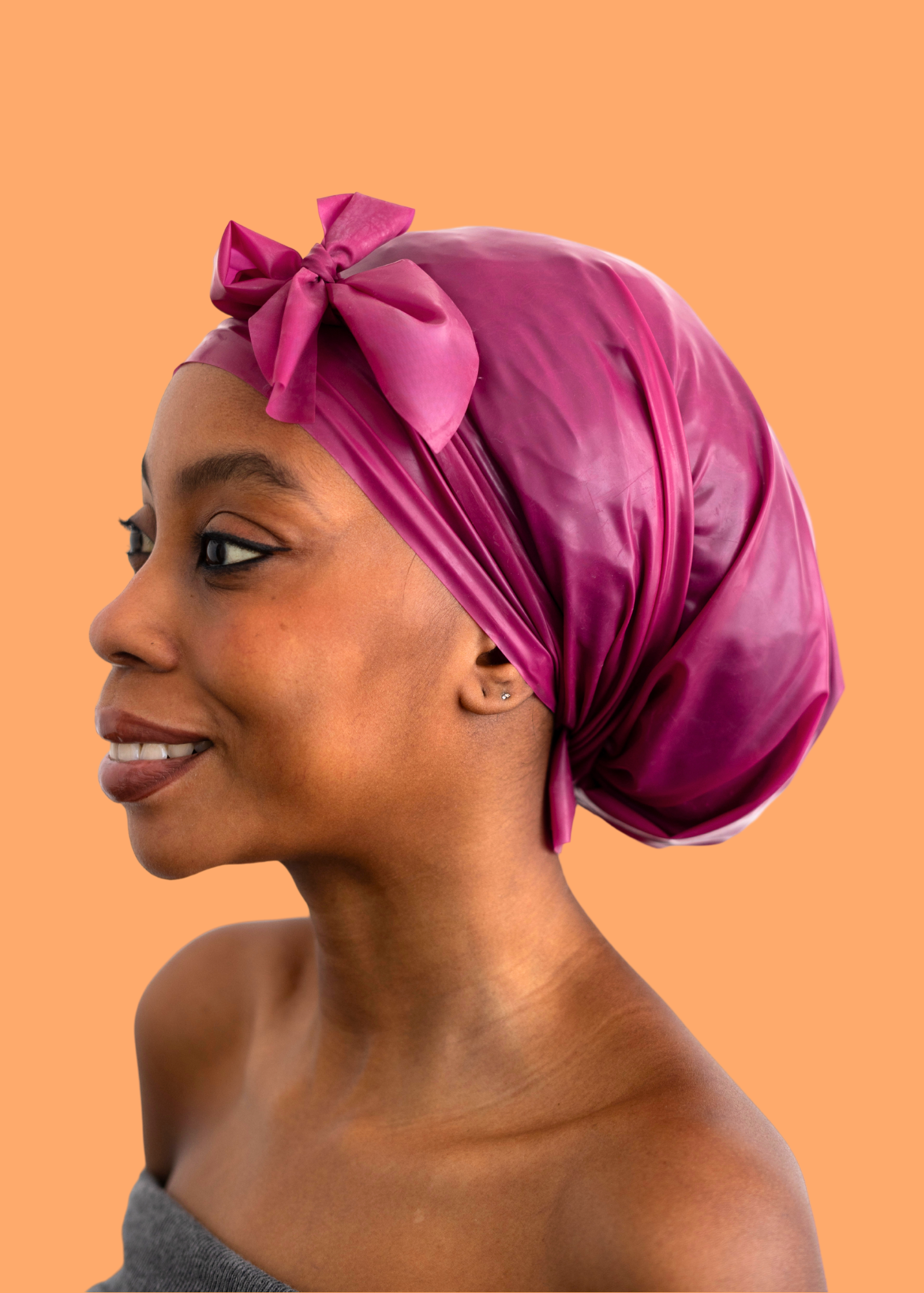 Our Luxe Obé Satin Bonnet is the perfect accompaniment gifted in every box. The height of stylish elegance, offering unparalleled comfort. Suitable for elevating your everyday wardrobe, wearing underneath your PHARAOH for its wicking benefits and to release your hands for tying your head scarf, or it can be used over your PHARAOH during conditioning and steam treatments.