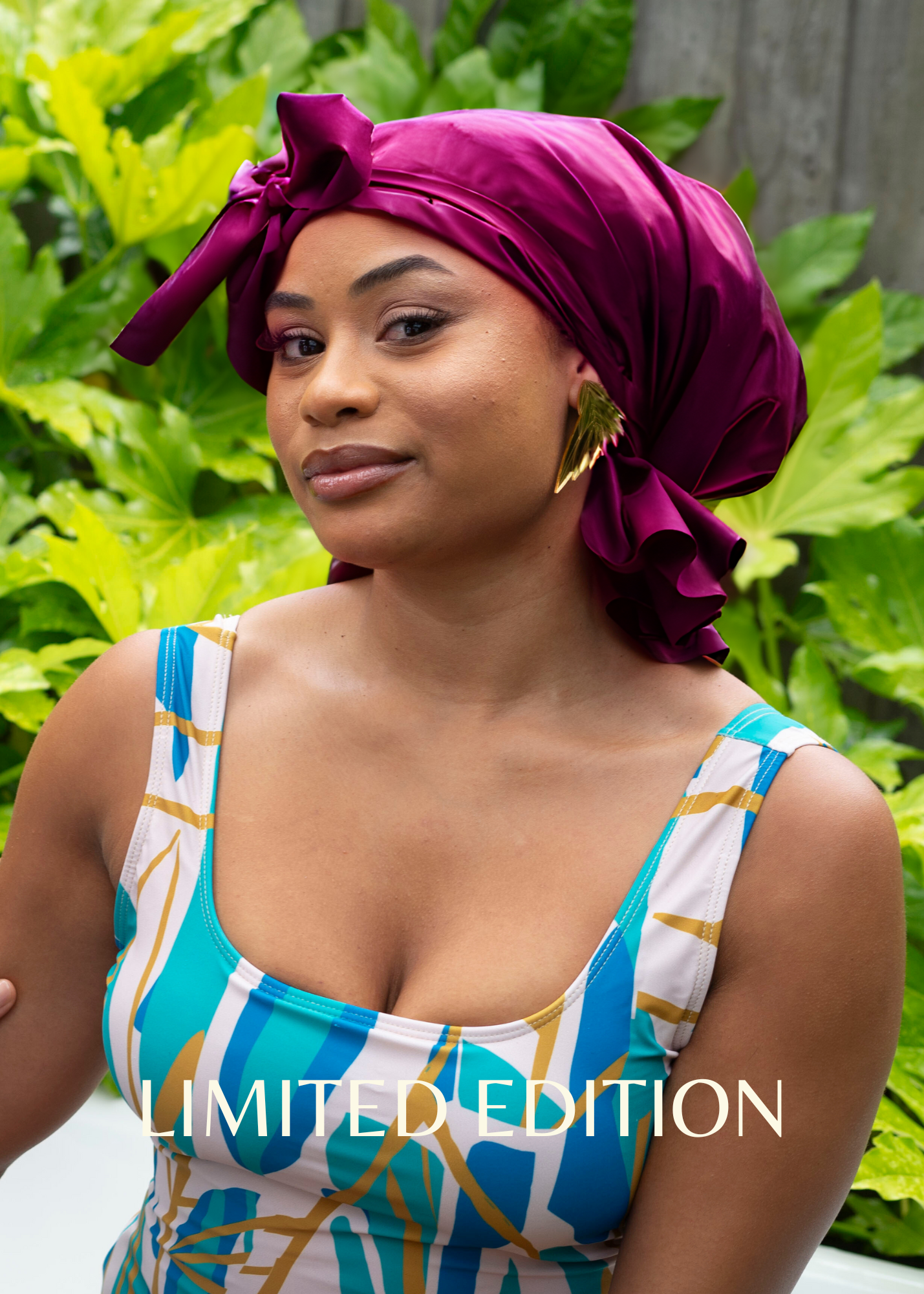Obé waterproof head scarves create an iconic look while uniquely protecting your beautiful hair from water.
